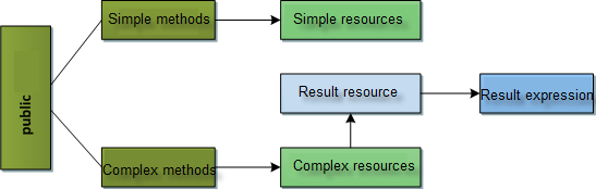Also, we define the domain resources as simple domain resources and complex domain resources. SuperMap iServer publishes simple method in the domain component as simple domain resource, and publishes complex method as complex domain resource: