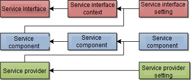 One service interface corresponds to one or more service components, and one service component corresponds to one or more service providers. Note that some service interfaces such as WMS service interface can only correspond to one map service component.