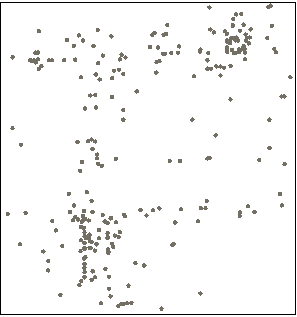 Figure 1: Point object Figure 2: Results of implementing Spatial Density Clustering on point objects