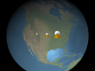下图中,布告板位于地球中心,但由于视点的偏移,无论观众或地球的方位如何,布告板始终显示在地球的顶部。