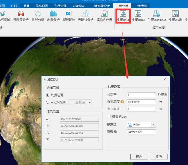 Load the oblique photographic data into the scene, open the data source where the DSM is located, save the scene and workspace, and close the current scene.