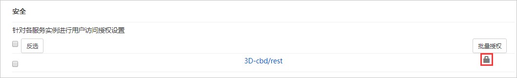 (1).发布三维服务后,从“服务管理”页面进入,找到该服务,点击“安全”, 再点击服务右边的“小锁”图标。如图1所示: