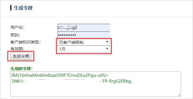 (3).然后根据需要选择客户端标识类型和有效期,单击“生成令牌”按钮,即可获取token。